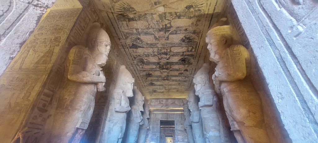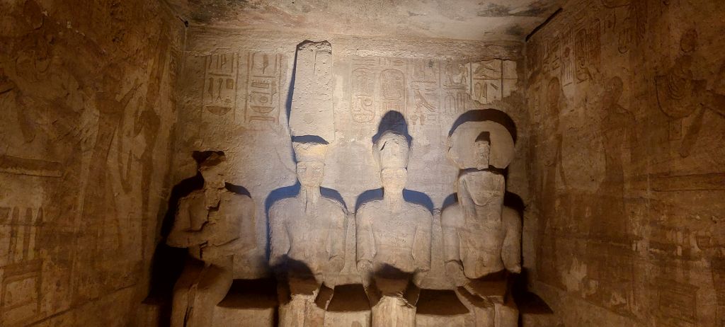 Ahmed konnte es sich nicht verkneifen, zu erzählen, dass die alten Ägypter den Tempel so platziert hatten, dass genau zweimal im Jahr die Sonne hereinscheint und Ramses beleuchtet. Nur die deutschen Ingenieure hätten den Wiederaufbau nicht so exakt hinbekommen. Die Statue von Ramses habe einen halben Meter versetzt werden müssen.