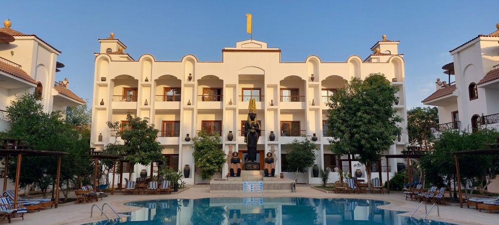 Weiter geht es im Takt: Abydos. Das Hotel House of Life Abydos war besser als befürchtet. Von außen eine erschreckende Baustelle und ein „interessanter“ Stilmix. Innen in Ordnung, sauber, aber knüppelharte Betten. Essen wieder Einheitsabfütterung. Roomtour hier.