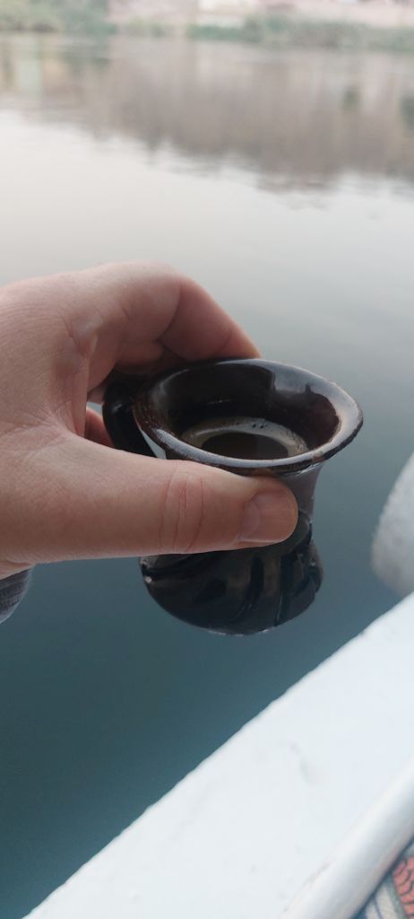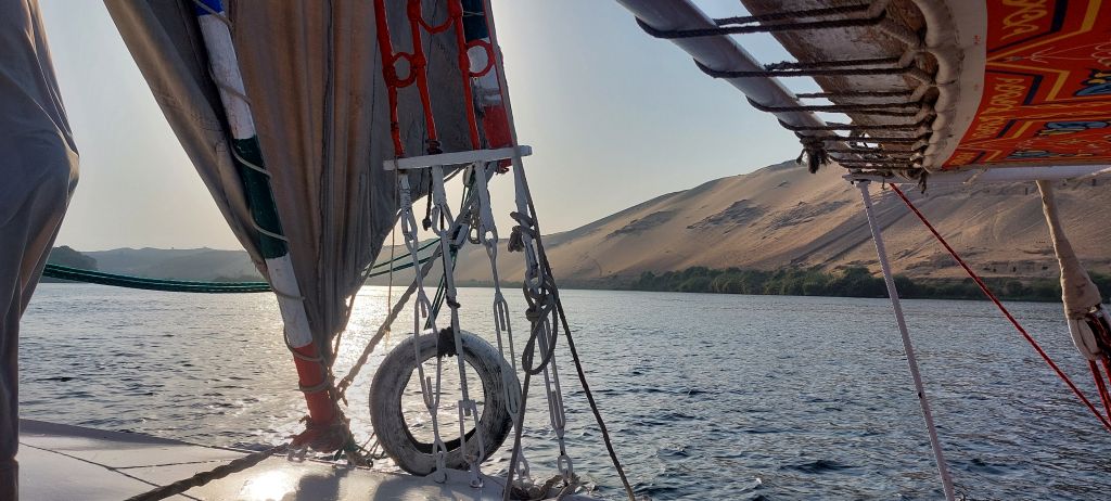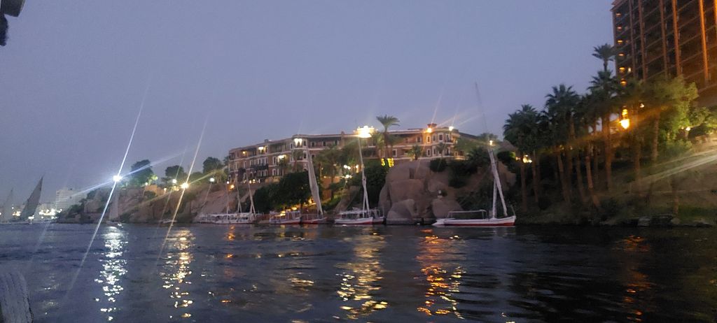 Die Fahrt mit der Felluke auf dem Nil war nett, aber kann man sich auch schenken. Sehr schön dagegen war die Bootstour zum ersten Katarakt des Nils. Abendstimmung und ein nubischer Kaffee: mit Kardamom, Zimt, Ingwer und Muskatnuss gekocht. Richtig lecker, schon eher ein Curry mit Kaffee. Das war dann mal etwas Urlaubsgefühl.
